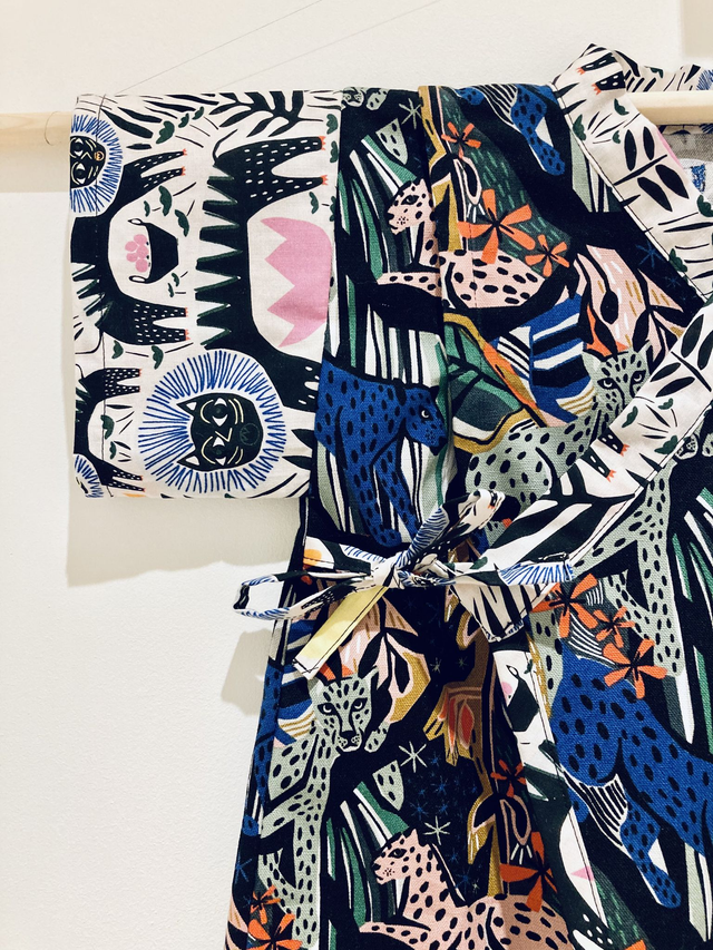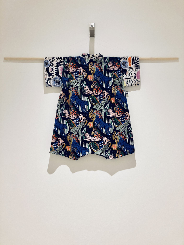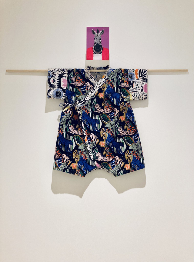 Children’s kimono style romper handmade from deadstock fabrics. Oversized fit and tie fastenings (at sides) for longevity.